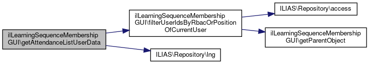 Here is the caller graph for this function:| ilLearningSequenceMembershipGUI::getAttendanceListUserData | ( | int | $user_id, |