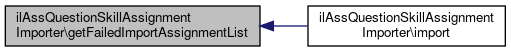 Here is the caller graph for this function:| ilAssQuestionSkillAssignmentImporter::getFailedImportAssignmentList | ( | ) |