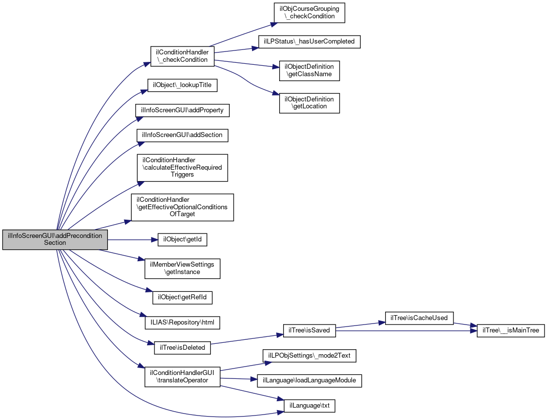 | addPreconditionSection (ilObject $obj, array $conditions, bool $obligatory=true) | |