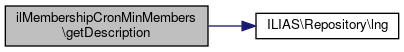 | ilMembershipCronMinMembers::getDescription | ( | ) |
