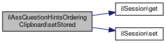 Here is the call graph for this function:| ilAssQuestionHintsOrderingClipboard::setStored | ( | $hintId | ) |