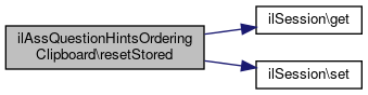 Here is the call graph for this function:| ilAssQuestionHintsOrderingClipboard::resetStored | ( | ) |