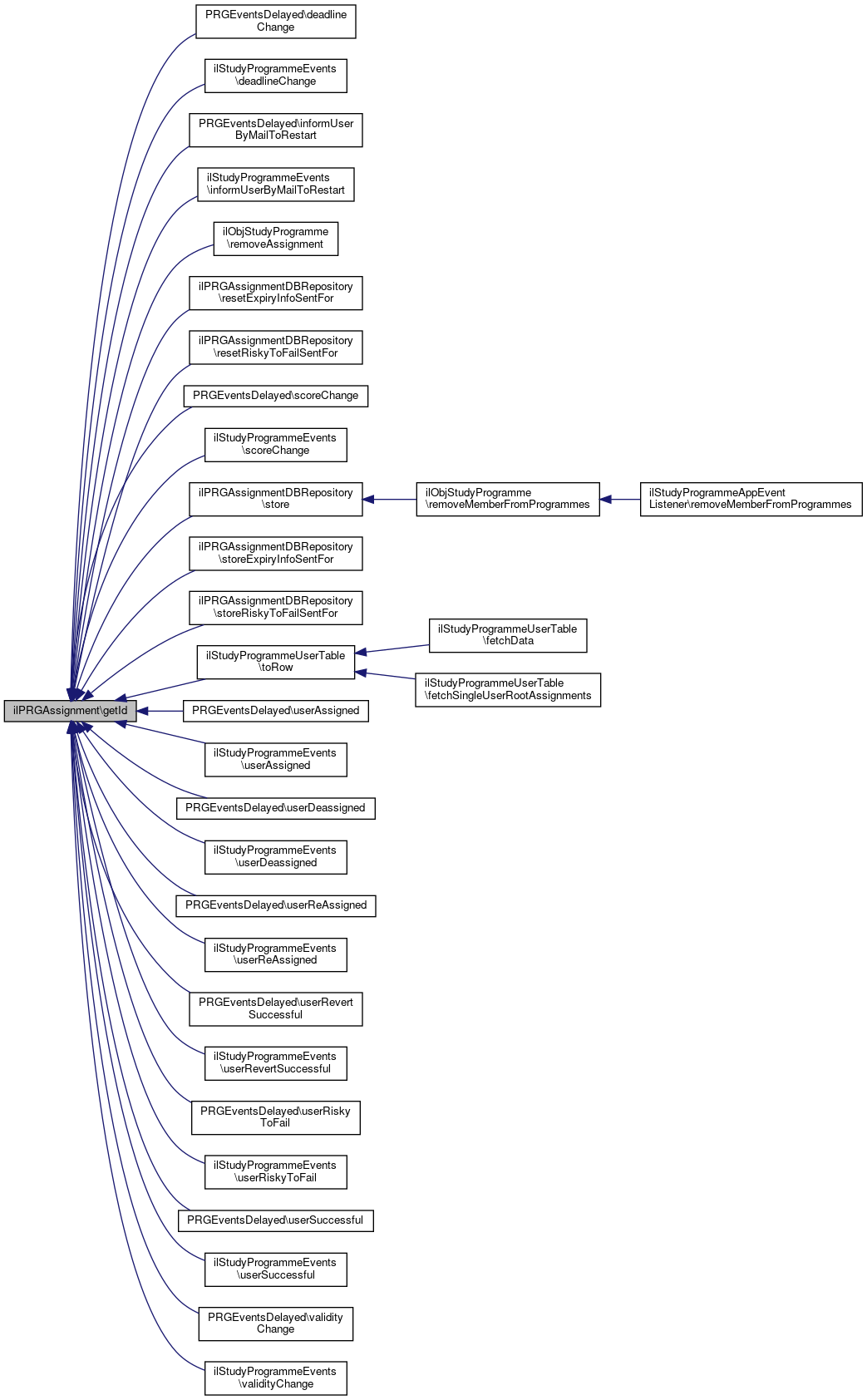 Referenced by PRGEventsDelayed\deadlineChange(), ilStudyProgrammeEvents\deadlineChange(), PRGEventsDelayed\informUserByMailToRestart(), ilStudyProgrammeEvents\informUserByMailToRestart(), ilObjStudyProgramme\removeAssignment(), ilPRGAssignmentDBRepository\resetExpiryInfoSentFor(), ilPRGAssignmentDBRepository\resetRiskyToFailSentFor(), PRGEventsDelayed\scoreChange(), ilStudyProgrammeEvents\scoreChange(), ilPRGAssignmentDBRepository\store(), ilPRGAssignmentDBRepository\storeExpiryInfoSentFor(), ilPRGAssignmentDBRepository\storeRiskyToFailSentFor(), ilStudyProgrammeUserTable\toRow(), PRGEventsDelayed\userAssigned(), ilStudyProgrammeEvents\userAssigned(), PRGEventsDelayed\userDeassigned(), ilStudyProgrammeEvents\userDeassigned(), PRGEventsDelayed\userReAssigned(), ilStudyProgrammeEvents\userReAssigned(), PRGEventsDelayed\userRevertSuccessful(), ilStudyProgrammeEvents\userRevertSuccessful(), PRGEventsDelayed\userRiskyToFail(), ilStudyProgrammeEvents\userRiskyToFail(), PRGEventsDelayed\userSuccessful(), ilStudyProgrammeEvents\userSuccessful(), PRGEventsDelayed\validityChange(), and ilStudyProgrammeEvents\validityChange().