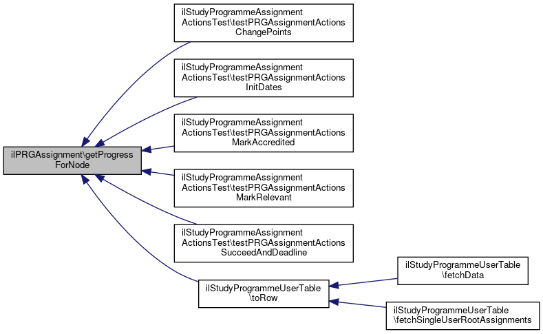 Referenced by ilStudyProgrammeMailTemplateContext\getLatestAssignment(), ilPRGAssignmentDBRepository\getLatestAssignment(), ilStudyProgrammeMailTemplateContext\getLatestSuccessfulAssignment(), ilPRGAssignmentDBRepository\getLongestValidAssignment(), getProgresses(), and getProgressForNode().