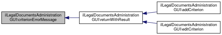 Here is the call graph for this function:| ilLegalDocumentsAdministrationGUI::editCriterion | ( | ) |