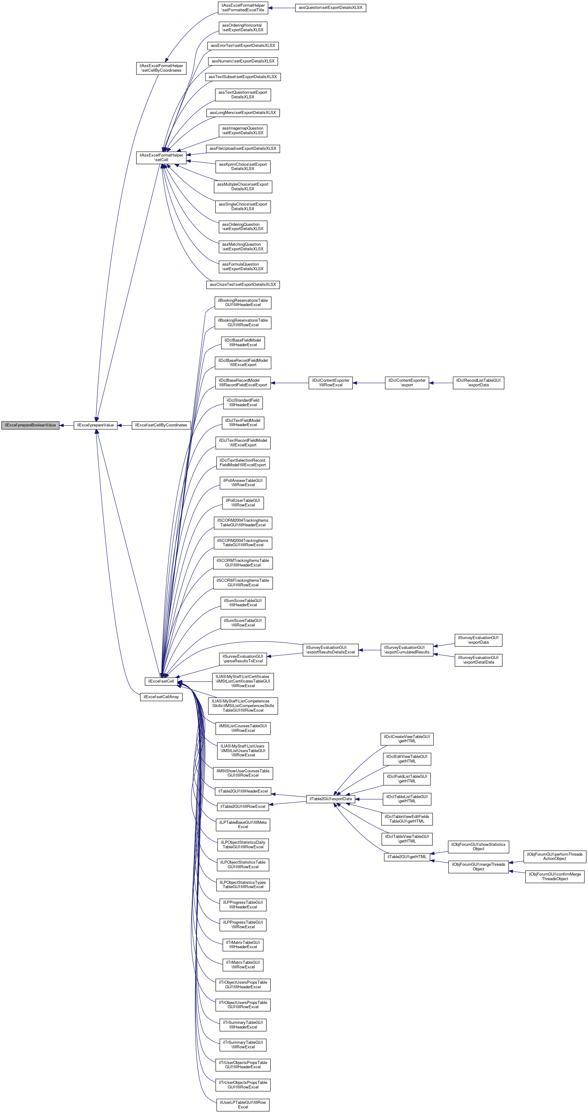 Referenced by ilSurveyEvaluationGUI\exportResultsDetailsExcel(), ilDclTextSelectionRecordFieldModel\fillExcelExport(), ilDclTextRecordFieldModel\fillExcelExport(), ilDclBaseRecordFieldModel\fillExcelExport(), ilSumScoreTableGUI\fillHeaderExcel(), ilDclTextFieldModel\fillHeaderExcel(), ilSCORMTrackingItemsTableGUI\fillHeaderExcel(), ilSCORM2004TrackingItemsTableGUI\fillHeaderExcel(), ilDclStandardField\fillHeaderExcel(), ilLPProgressTableGUI\fillHeaderExcel(), ilTrObjectUsersPropsTableGUI\fillHeaderExcel(), ilTrUserObjectsPropsTableGUI\fillHeaderExcel(), ilTrMatrixTableGUI\fillHeaderExcel(), ilDclBaseFieldModel\fillHeaderExcel(), ilBookingReservationsTableGUI\fillHeaderExcel(), ilTrSummaryTableGUI\fillHeaderExcel(), ilTable2GUI\fillHeaderExcel(), ilLPTableBaseGUI\fillMetaExcel(), ilDclBaseRecordModel\fillRecordFieldExcelExport(), ilSumScoreTableGUI\fillRowExcel(), ilPollAnswerTableGUI\fillRowExcel(), ilPollUserTableGUI\fillRowExcel(), ilUserLPTableGUI\fillRowExcel(), ilSCORMTrackingItemsTableGUI\fillRowExcel(), ilSCORM2004TrackingItemsTableGUI\fillRowExcel(), ILIAS\MyStaff\ListCompetences\Skills\ilMStListCompetencesSkillsTableGUI\fillRowExcel(), ILIAS\MyStaff\ListCertificates\ilMStListCertificatesTableGUI\fillRowExcel(), ilMStShowUserCoursesTableGUI\fillRowExcel(), ilLPObjectStatisticsTypesTableGUI\fillRowExcel(), ILIAS\MyStaff\ListUsers\ilMStListUsersTableGUI\fillRowExcel(), ilLPObjectStatisticsDailyTableGUI\fillRowExcel(), ilMStListCoursesTableGUI\fillRowExcel(), ilLPObjectStatisticsTableGUI\fillRowExcel(), ilLPProgressTableGUI\fillRowExcel(), ilTrObjectUsersPropsTableGUI\fillRowExcel(), ilTrUserObjectsPropsTableGUI\fillRowExcel(), ilTrMatrixTableGUI\fillRowExcel(), ilBookingReservationsTableGUI\fillRowExcel(), ilTrSummaryTableGUI\fillRowExcel(), ilTable2GUI\fillRowExcel(), and ilSurveyEvaluationGUI\parseResultsToExcel().