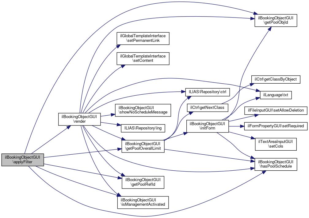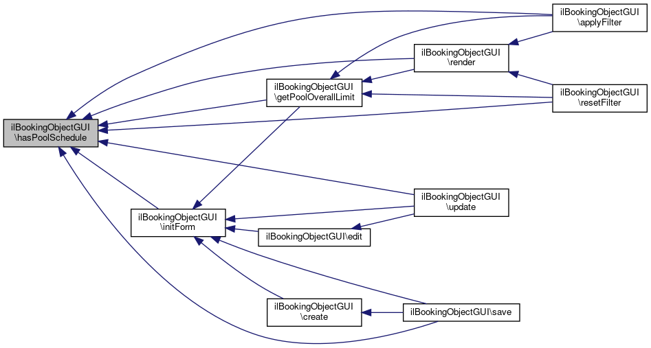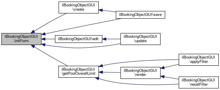 Here is the caller graph for this function:| ilBookingObjectGUI::applyFilter | ( | ) |