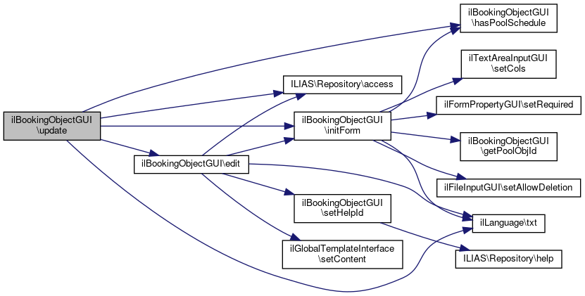 Here is the caller graph for this function:| ilBookingObjectGUI::update | ( | ) |
