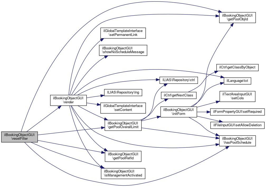 Here is the caller graph for this function:| ilBookingObjectGUI::resetFilter | ( | ) |