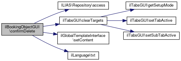 Here is the call graph for this function:| ilBookingObjectGUI::confirmDelete | ( | ) |