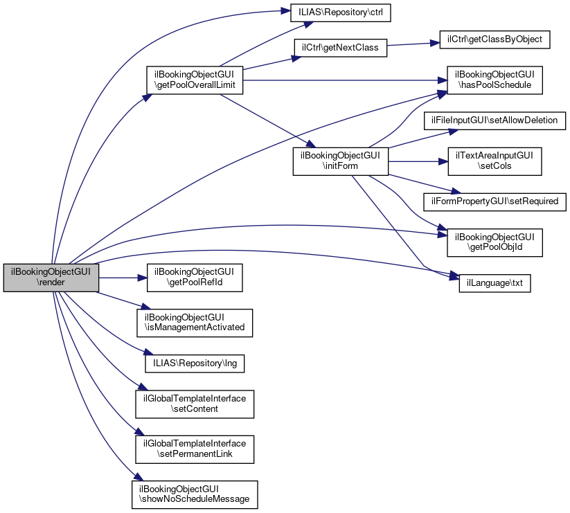 Here is the caller graph for this function:| ilBookingObjectGUI::render | ( | ) |