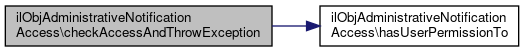 Here is the call graph for this function:| ilObjAdministrativeNotificationAccess::hasUserPermissionTo | ( | string | $permission | ) |