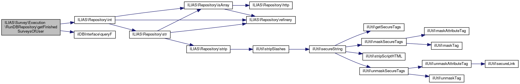 Here is the call graph for this function:| ILIAS\Survey\Execution\RunDBRepository::getFinishedSurveysOfUser | ( | int | $user_id | ) |