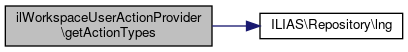 Here is the call graph for this function:| ilWorkspaceUserActionProvider::getActionTypes | ( | ) |