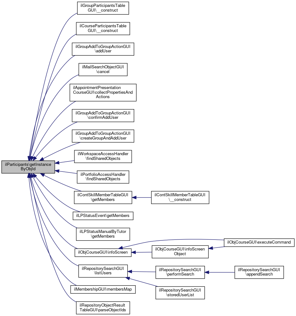Referenced by ilLearningSequenceParticipants\__construct(), ilLearningSequenceParticipants\_getInstanceByObjId(), and getInstanceByObjId().