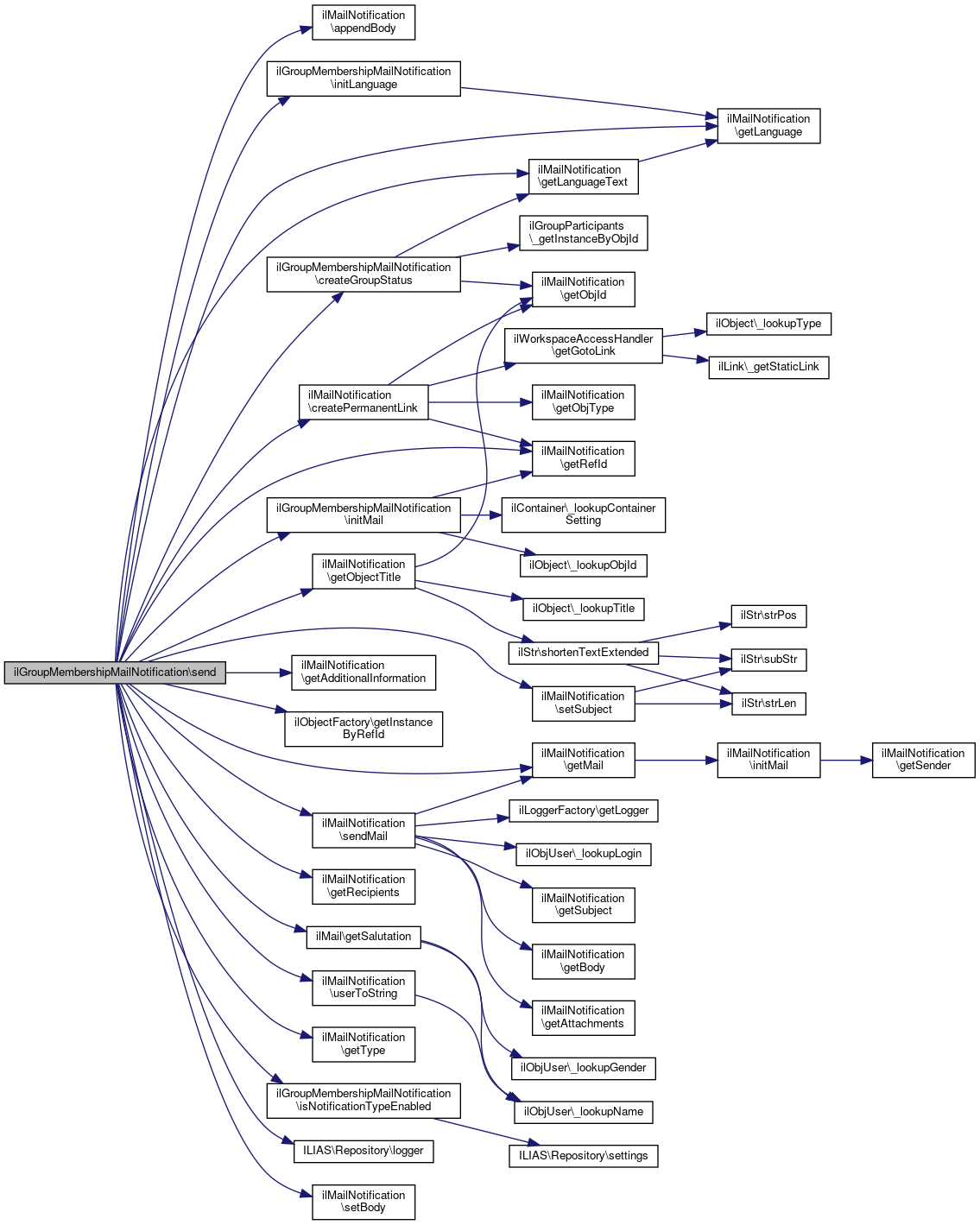 References ilMailNotification\appendBody(), createGroupStatus(), ilMailNotification\createPermanentLink(), ilMailNotification\getAdditionalInformation(), ilObjectFactory\getInstanceByRefId(), ilMailNotification\getLanguage(), ilMailNotification\getLanguageText(), ilMailNotification\getMail(), ilMailNotification\getObjectTitle(), ilMailNotification\getRecipients(), ilMailNotification\getRefId(), ilMail\getSalutation(), ilMailNotification\getType(), initLanguage(), initMail(), isNotificationTypeEnabled(), ILIAS\Repository\logger(), ilMailNotification\sendMail(), ilMailNotification\setBody(), ilMailNotification\setSubject(), and ilMailNotification\userToString().