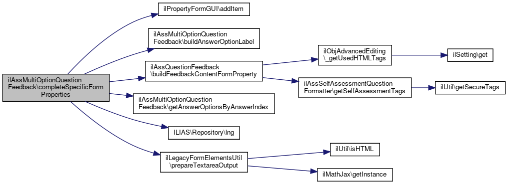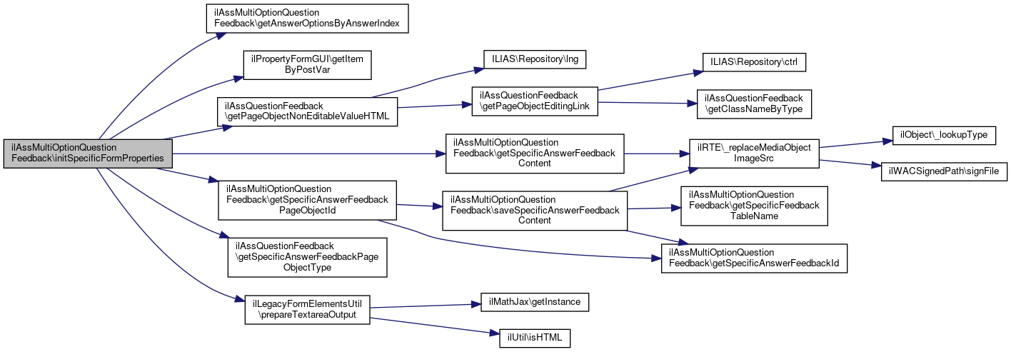Referenced by ilAssConfigurableMultiOptionQuestionFeedback\completeSpecificFormProperties(), completeSpecificFormProperties(), ilAssConfigurableMultiOptionQuestionFeedback\initSpecificFormProperties(), initSpecificFormProperties(), ilAssConfigurableMultiOptionQuestionFeedback\saveSpecificFormProperties(), and saveSpecificFormProperties().