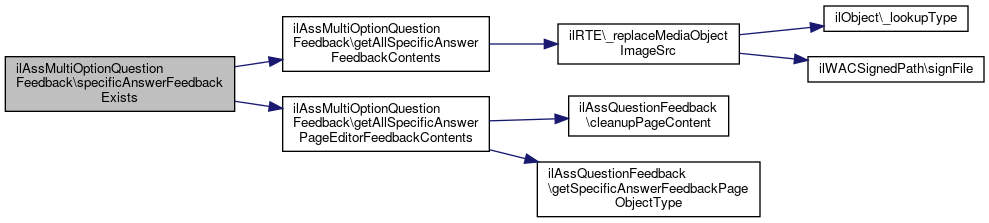 Here is the call graph for this function:| ilAssMultiOptionQuestionFeedback::specificAnswerFeedbackExists | ( | ) |