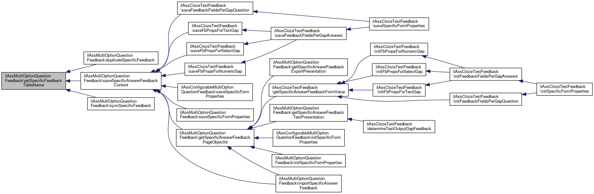 Here is the call graph for this function:| const ilAssMultiOptionQuestionFeedback::TABLE_NAME_SPECIFIC_FEEDBACK = 'qpl_fb_specific' |