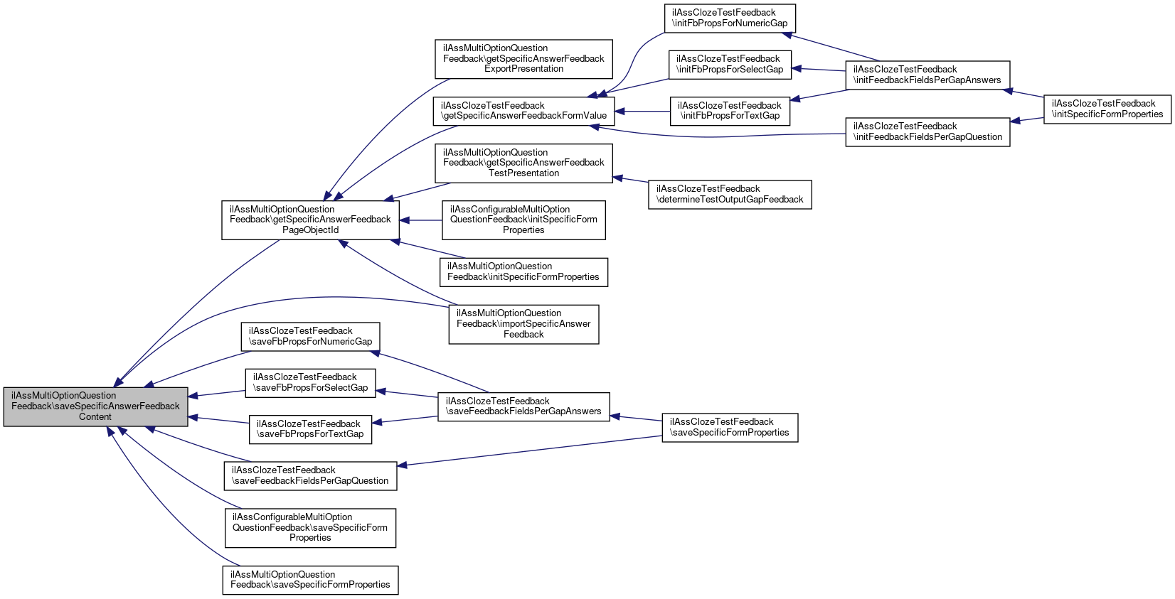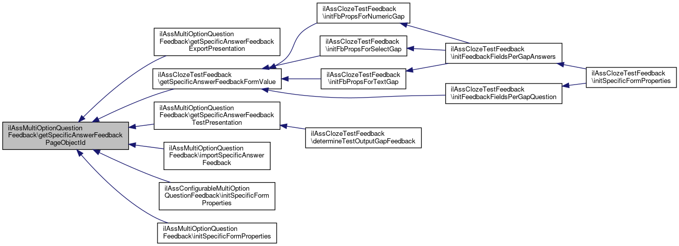 Referenced by getSpecificAnswerFeedbackPageObjectId(), importSpecificAnswerFeedback(), ilAssClozeTestFeedback\saveFbPropsForNumericGap(), ilAssClozeTestFeedback\saveFbPropsForSelectGap(), ilAssClozeTestFeedback\saveFbPropsForTextGap(), ilAssClozeTestFeedback\saveFeedbackFieldsPerGapQuestion(), ilAssConfigurableMultiOptionQuestionFeedback\saveSpecificFormProperties(), and saveSpecificFormProperties().