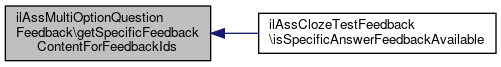 Here is the caller graph for this function:| ilAssMultiOptionQuestionFeedback::getSpecificAnswerFeedbackContent | ( | int | $question_id, |