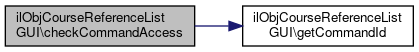 Here is the call graph for this function:| ilObjCourseReferenceListGUI::checkCommandAccess | ( | string | $permission, |