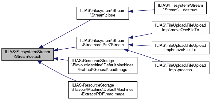 Here is the caller graph for this function:| ILIAS\Filesystem\Stream\Stream::detach | ( | ) |
