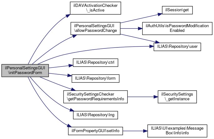 References ILIAS\Repository\form(), initPasswordForm(), initSubTabs(), ILIAS\Repository\lng(), setHeader(), ILIAS\Repository\tabs(), and ILIAS\Repository\user().