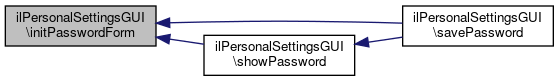 Here is the caller graph for this function:| ilPersonalSettingsGUI::initPasswordForm | ( | ) |