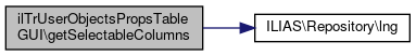 Here is the caller graph for this function:| ilTrUserObjectsPropsTableGUI::getSelectableColumns | ( | ) |