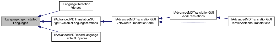 Here is the caller graph for this function:| ilLanguage::getInstalledLanguages | ( | ) |