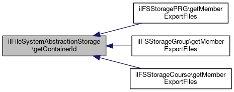 Here is the caller graph for this function:| ilFileSystemAbstractionStorage::getContainerId | ( | ) |