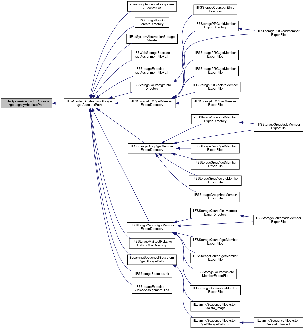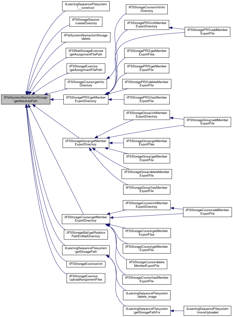 Here is the caller graph for this function:| ilFileSystemAbstractionStorage::getAbsolutePath | ( | ) |