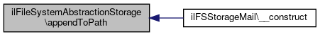 Here is the caller graph for this function:| ilFileSystemAbstractionStorage::appendToPath | ( | string | $a_appendix | ) |