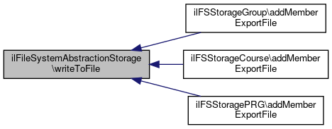 Here is the caller graph for this function:| ilFileSystemAbstractionStorage::writeToFile | ( | string | $a_data, |
