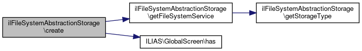 Here is the call graph for this function:| ilFileSystemAbstractionStorage::create | ( | ) |