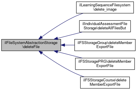 Here is the caller graph for this function:| ilFileSystemAbstractionStorage::delete | ( | ) |