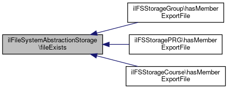 Here is the caller graph for this function:| ilFileSystemAbstractionStorage::fileExists | ( | string | $a_absolute_path | ) |