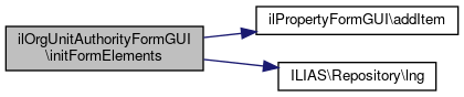 Here is the call graph for this function:| ilOrgUnitAuthorityFormGUI::initFormElements | ( | ) |