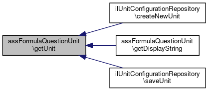 Here is the caller graph for this function:| assFormulaQuestionUnit::getUnit | ( | ) |