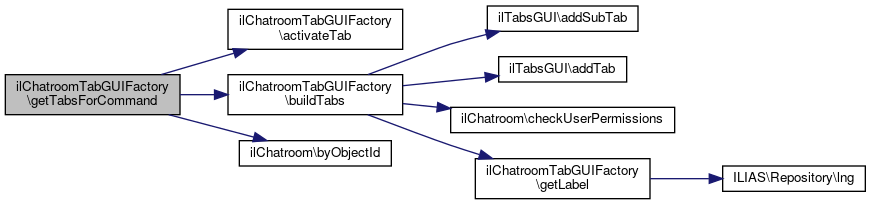Here is the caller graph for this function:| ilChatroomTabGUIFactory::getTabsForCommand | ( | string | $command | ) |