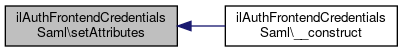 Here is the call graph for this function:| ilAuthFrontendCredentialsSaml::setAttributes | ( | array | $attributes | ) |