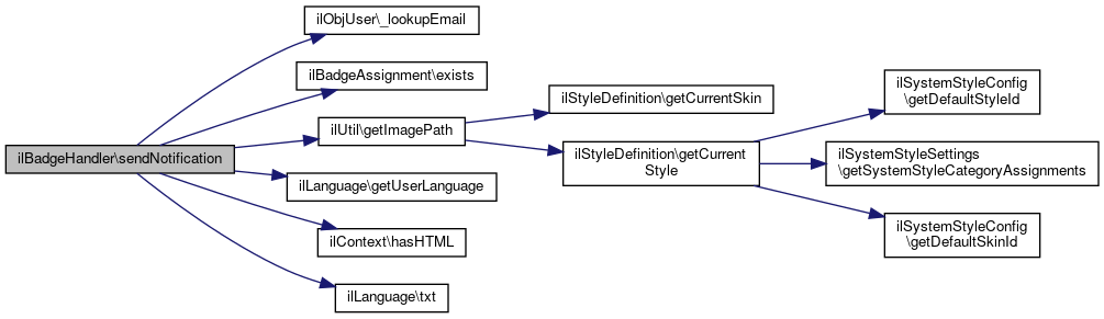 Here is the call graph for this function:| ilBadgeHandler::sendNotification | ( | array | $a_user_map, |