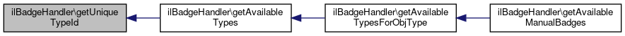 Here is the caller graph for this function:| ilBadgeHandler::getUniqueTypeId | ( | string | $a_component_id, |