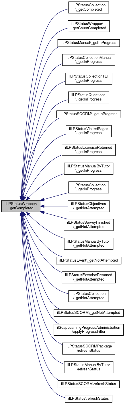 Referenced by ilLPStatusCollection\_getCompleted(), _getCountCompleted(), ilLPStatusManual\_getInProgress(), ilLPStatusCollectionManual\_getInProgress(), ilLPStatusCollectionTLT\_getInProgress(), ilLPStatusQuestions\_getInProgress(), ilLPStatusSCORM\_getInProgress(), ilLPStatusVisitedPages\_getInProgress(), ilLPStatusExerciseReturned\_getInProgress(), ilLPStatusManualByTutor\_getInProgress(), ilLPStatusCollection\_getInProgress(), ilLPStatusObjectives\_getNotAttempted(), ilLPStatusSurveyFinished\_getNotAttempted(), ilLPStatusManualByTutor\_getNotAttempted(), ilLPStatusEvent\_getNotAttempted(), ilLPStatusExerciseReturned\_getNotAttempted(), ilLPStatusCollection\_getNotAttempted(), ilLPStatusSCORM\_getNotAttempted(), ilSoapLearningProgressAdministration\applyProgressFilter(), ilLPStatusSCORMPackage\refreshStatus(), ilLPStatusManualByTutor\refreshStatus(), ilLPStatusSCORM\refreshStatus(), and ilLPStatus\refreshStatus().