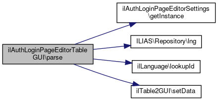 Here is the caller graph for this function:| ilAuthLoginPageEditorTableGUI::parse | ( | ) |