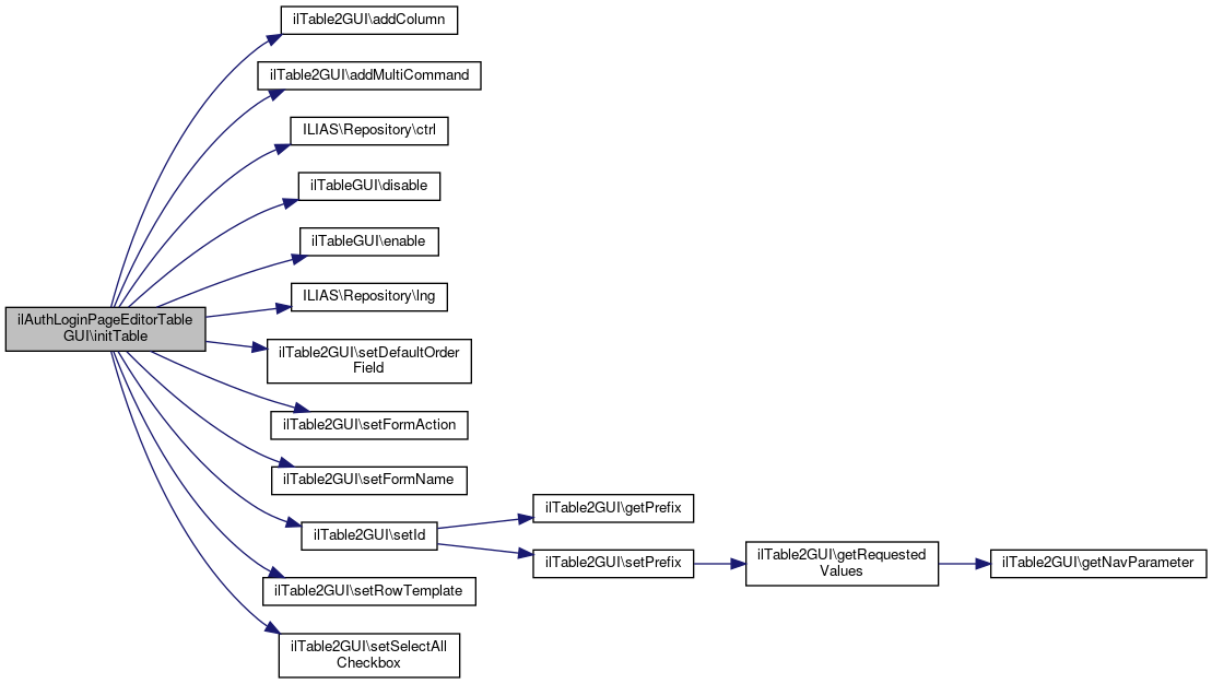 References ilTable2GUI\addColumn(), ilTable2GUI\addMultiCommand(), ILIAS\Repository\ctrl(), ilTableGUI\disable(), ilTableGUI\enable(), ILIAS\Repository\lng(), ilTable2GUI\setDefaultOrderField(), ilTable2GUI\setFormAction(), ilTable2GUI\setFormName(), ilTable2GUI\setId(), ilTable2GUI\setRowTemplate(), and ilTable2GUI\setSelectAllCheckbox().