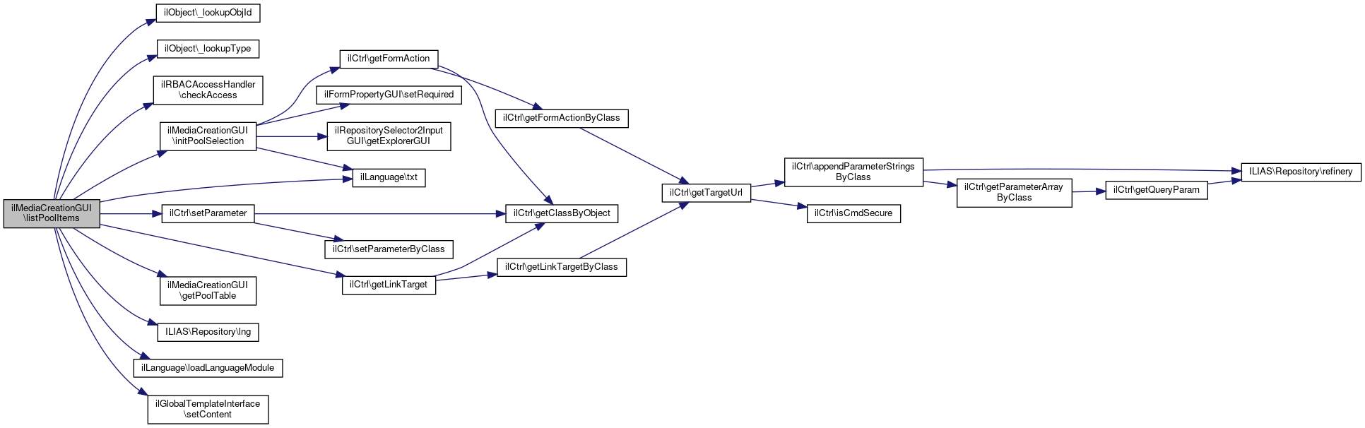 Here is the call graph for this function:| ilMediaCreationGUI::listPoolItems | ( | ) |