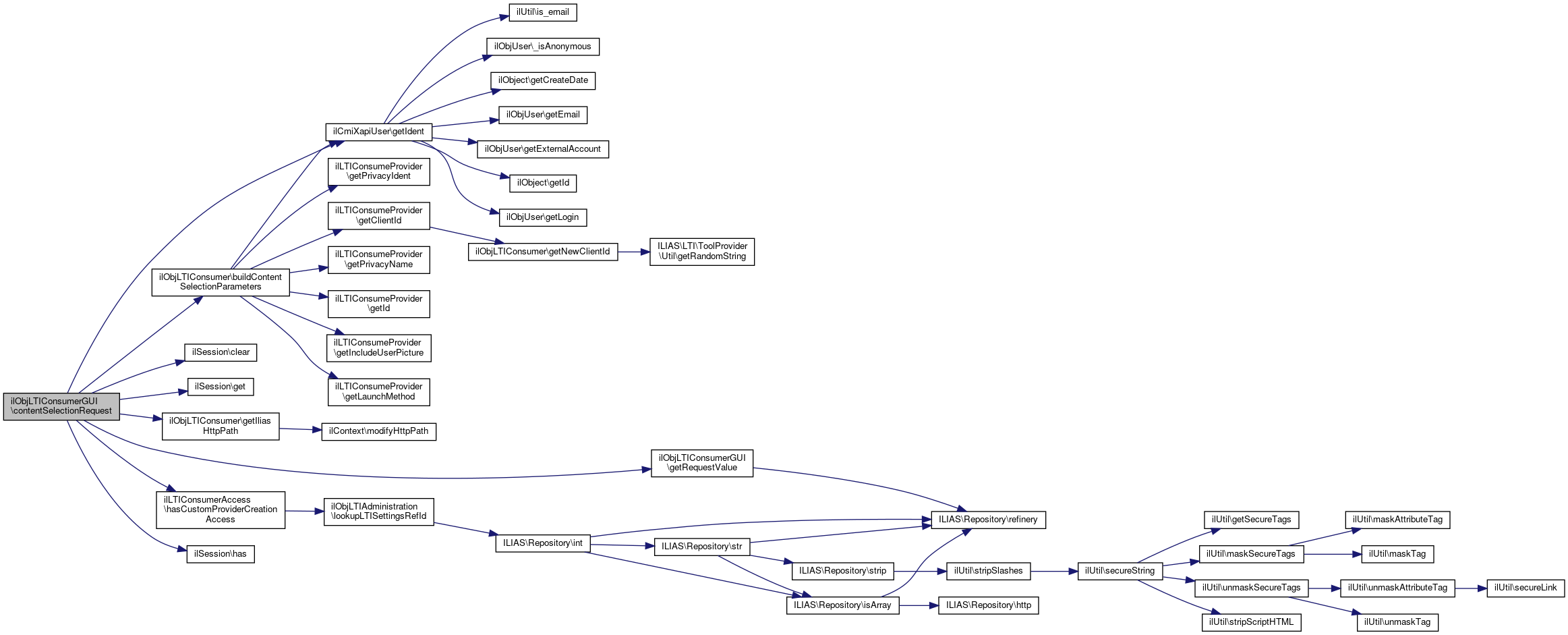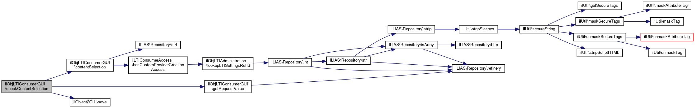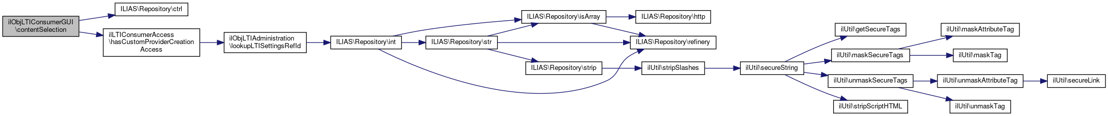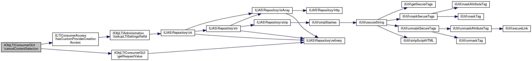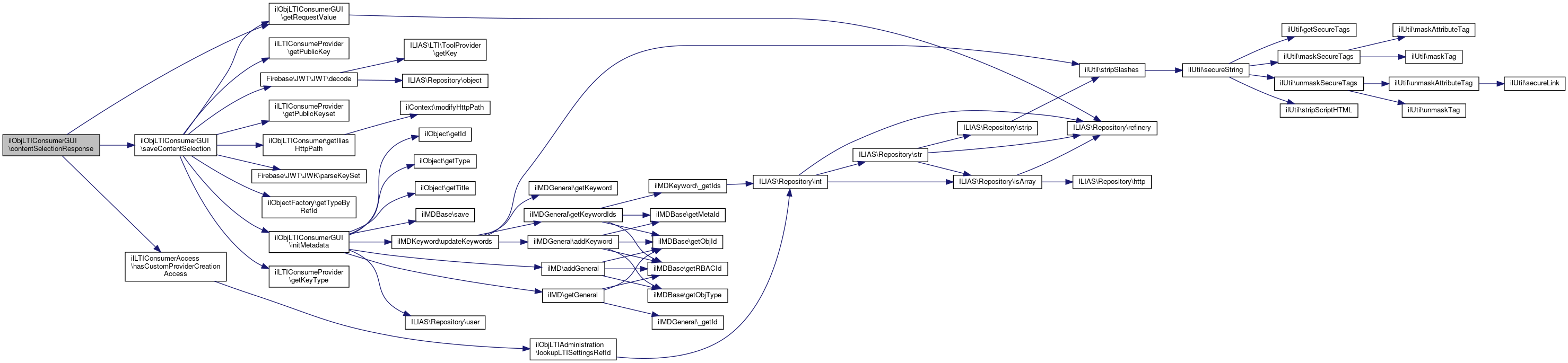 Here is the call graph for this function:| ilObjLTIConsumerGUI::contentSelectionResponse | ( | ) |