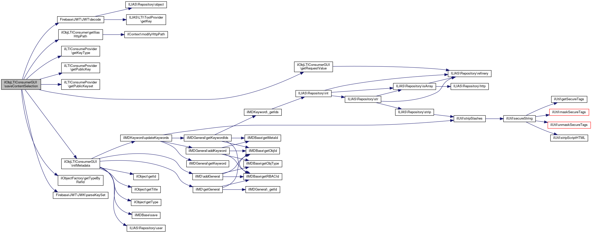 Here is the call graph for this function:| ilObjLTIConsumerGUI::saveContentSelection | ( | ilLTIConsumeProvider | $provider, |